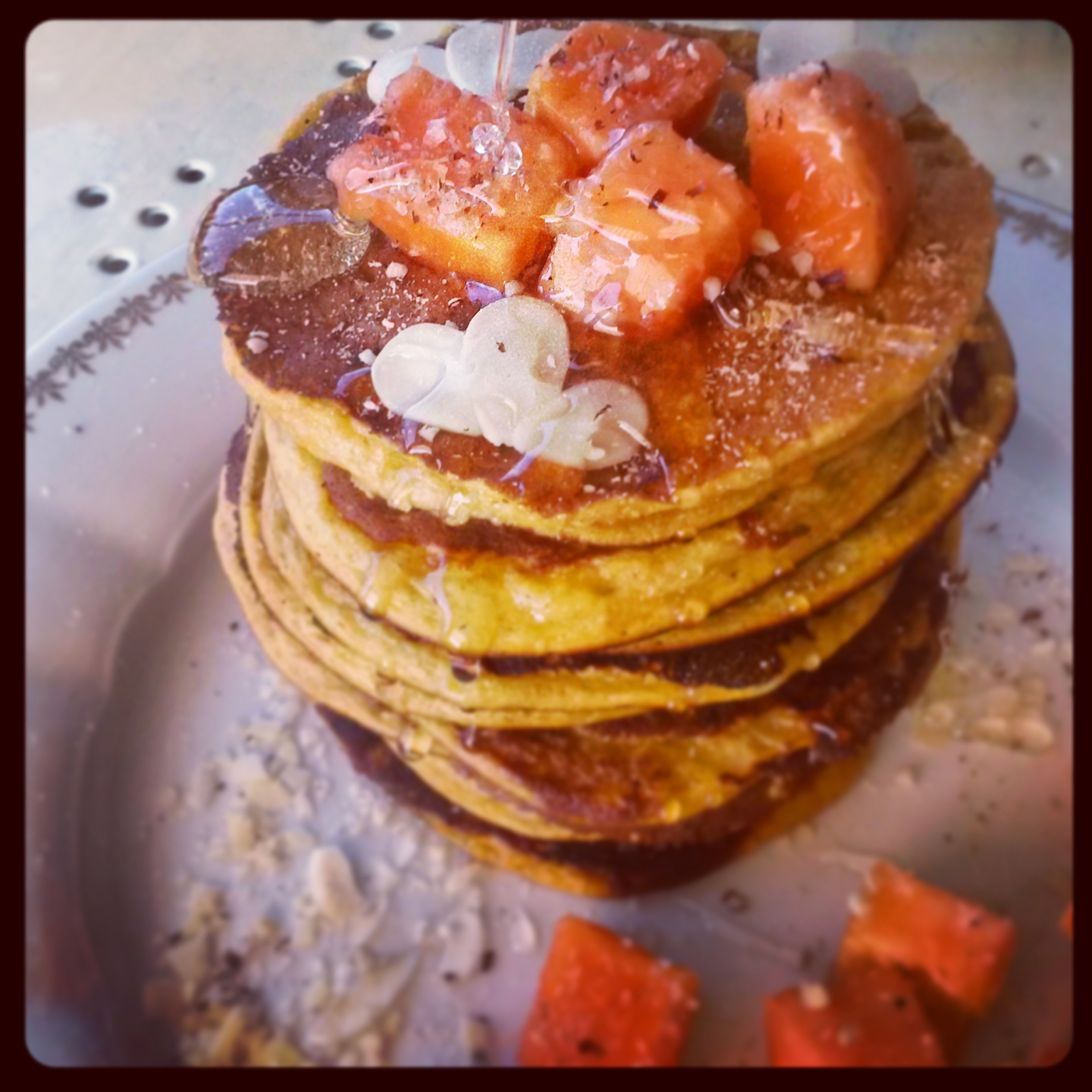 Buona domenica! Impossibile mancare la tradizione dei pancakes domenicali, oggi ho pensato di incorporare della frutta nell’impasto dei pancakes. Siccome il fruttivendolo è stato così gentile da regalarmi un’ottima papaya, perchè non preparare una splendida colazione a base di questo frutto esotico?